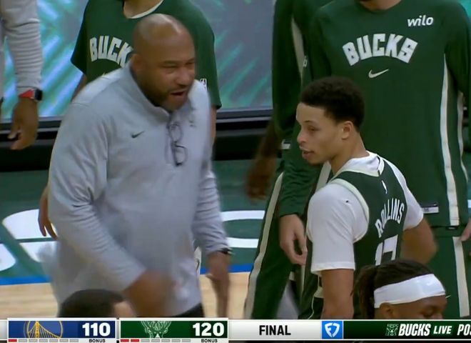 雄鹿有點東西啊,盡管沒有庫里、巴特勒那樣的超巨,他們?nèi)窠员?,全?人得分上雙,在主場作戰(zhàn)全隊13個罰球只有勇士的一半的情況下,幾乎沒啥懸念就攔住了勇士。