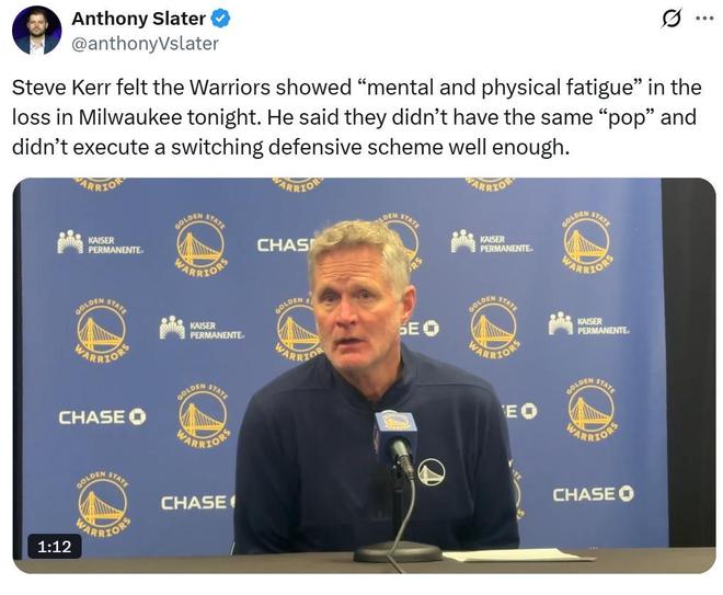 字母哥因傷缺席,開季至今高歌猛進(jìn)的勇士隊在庫里與巴特勒雙核拿下50分的情況下為何爆冷輸殘陣雄鹿?主帥科爾賽后通過諷刺口吻給出3大敗因。