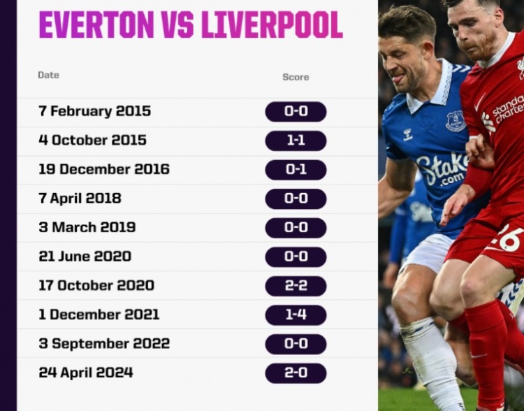 利物浦近10次做客古迪遜公園球場,有5場都和埃弗頓互交白卷