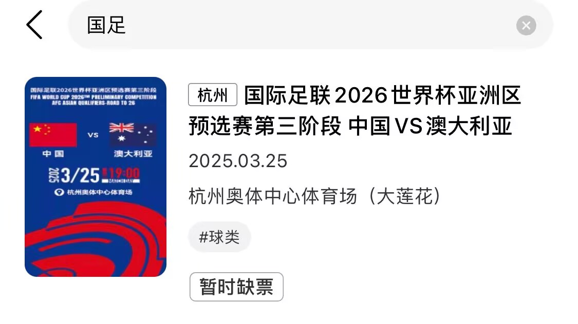 有錢(qián)也買(mǎi)不到了!黃牛平臺(tái)顯示,國(guó)足vs澳大利亞已缺票