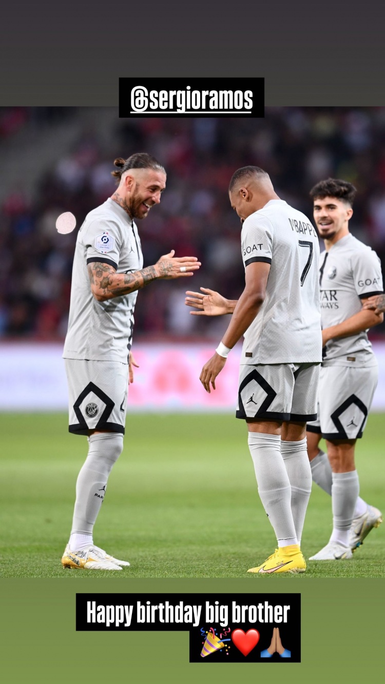 姆巴佩社媒曬與拉莫斯合照:生日快樂,大哥