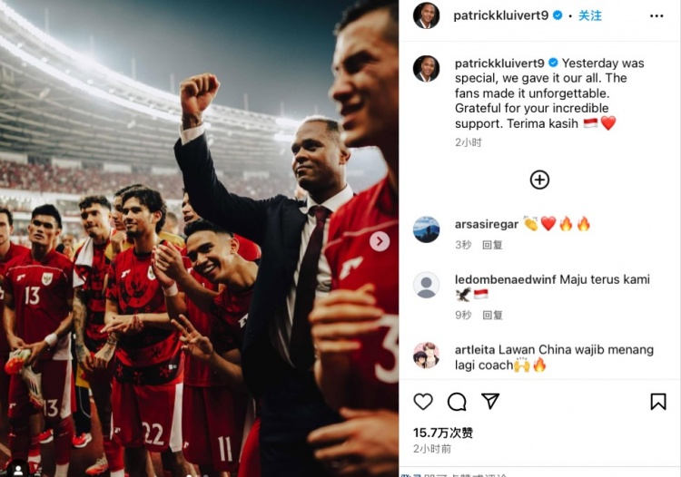 今日克魯伊維特更新社媒,曬出了全隊(duì)圍在一起慶祝勝利的照片,并配文寫(xiě)道:“昨天是特別的一天,我們?cè)趫?chǎng)上傾盡所有,球迷們的加油助威讓這晚更加難忘。謝謝你們令人振奮的支持,感謝(印尼語(yǔ))。”